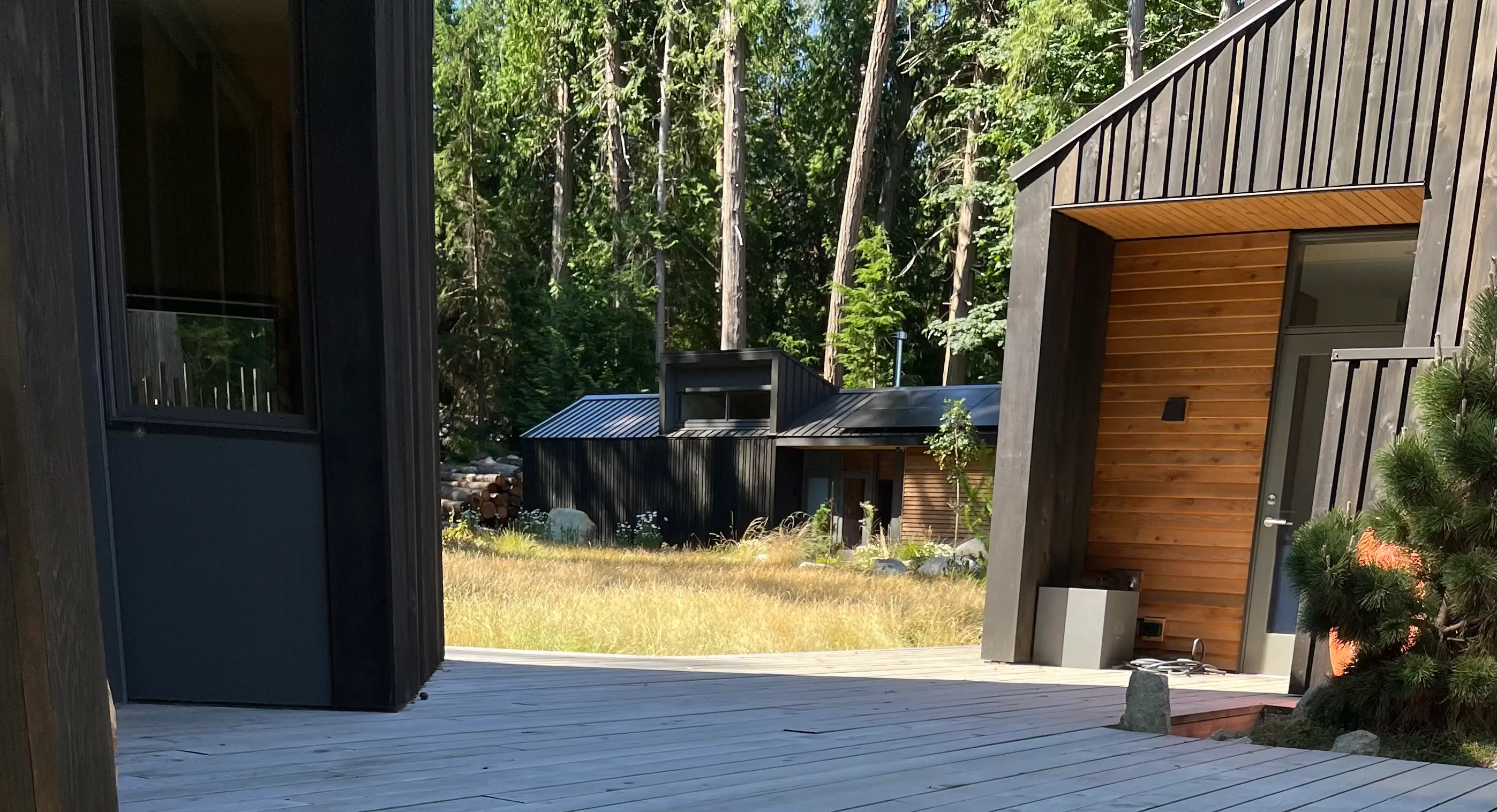 Island retreat truly embodies the heart and soul of Purehaus Developments. Although this is an expansive custom home with all the modern amenities you could ask for, its ability to connect to its natural surroundings and environment is unlike anything we have ever seen before. Architects Studio Balcaen Kwan designed this property with large family gatherings, relaxation retreats, and epic cabin weekends in mind. The three complimentary cabin structures can all relate in total harmony or be lived in as individual elements depending on the needs of any specific gathering of occupants. This fully off grid home uses passive solar design so manage its temperature throughout the months, and harnesses solar power with its 54 kilowatt battery storage system. Island Retreat used over 20,000 linear feet of timber from trees native to the raw site, processing all cedar siding, decking, and cladding materials locally on site. Lastly, Purehaus Developments designed and coordinated the installation of a custom pickleball court surface made from helical piles, structural steel, and cross laminated timber panels. 2,000 sq.ft court floats above the forest floor and allows the surrounding tree roots to thrive.